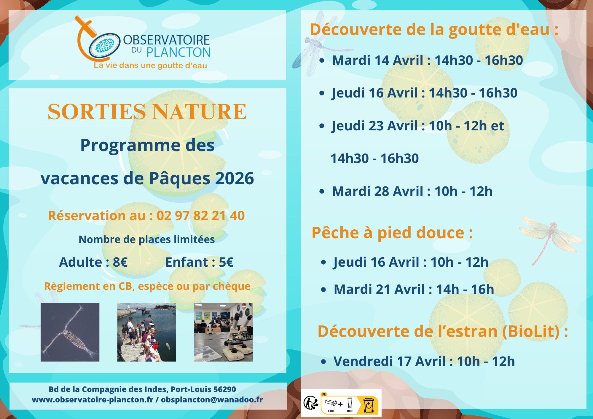 Des sorties nature pendant les vacances, découvrez par exemple la goutte d’eau dans nos locaux à Port-Louis, ou encore une pratique saine de pêche à pied lors des marées basses … Profitez toute l’année de nos activités !