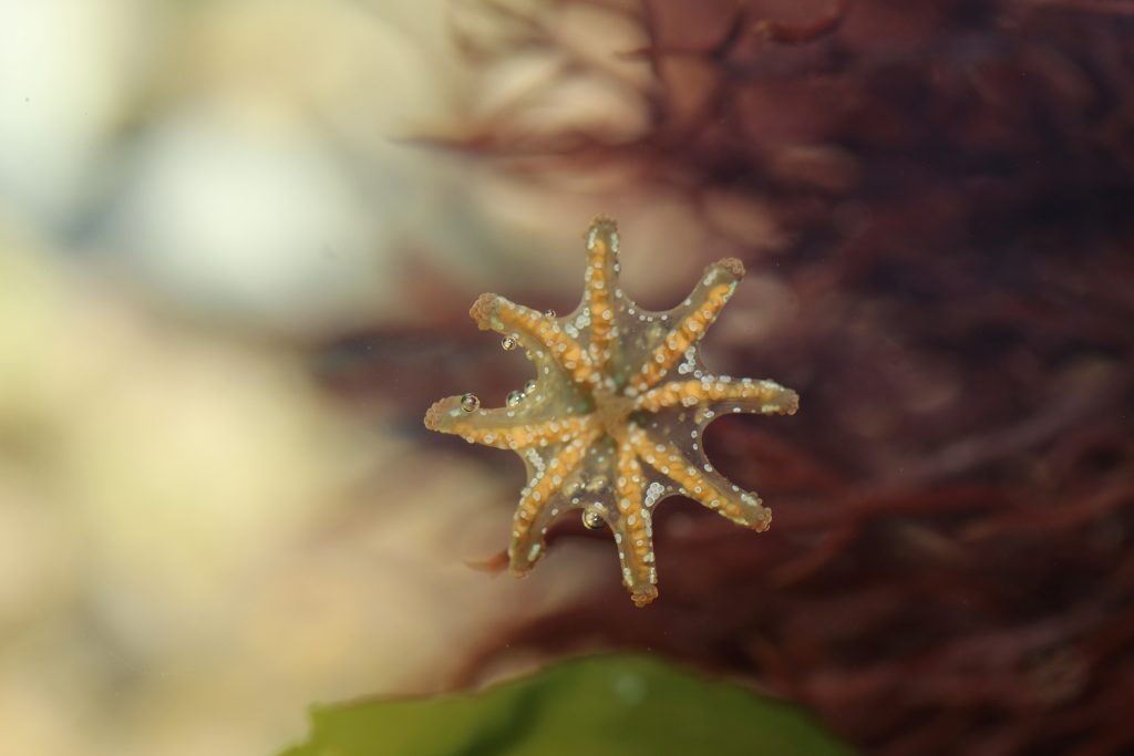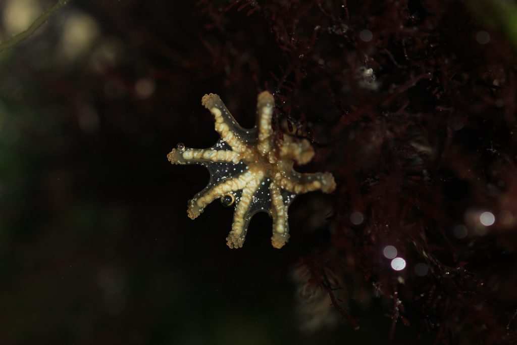 Nous l’aurons compris, les gélatineux sont très souvent planctoniques lorsqu’ils sont pélagiques du fait de leur faible mobilité ou de leur « manque d’envie » (entendez par là qu’une locomotion active n’est pas vitale pour ces espèces, donc elles ne le font pas). Cependant, certaines méduses n’ont pas la forme libre que l’on s’imagine, en forme de cloche et décorée de nombreux tentacules. La première, présente dans toutes les eaux côtières du globe, ne vit pas comme les autres : elle ne nage pas mais rampe ! De la taille de seulement 3 millimètres à peine, les genres Staurocladia et Eleutheria ont transformé leurs tentacules pour s’adapter à une vie benthique. Maintenant bifides, leurs organes tout d’abord utiles pour la chasse et la défense ont gagné une « branche » avec des ventouses pour la locomotion. On peut quand même soulever le fait que l’espèce Staurocladia portmanni serait capable de nager mais leur vie benthique resterait majoritaire.
