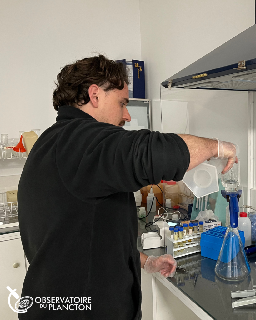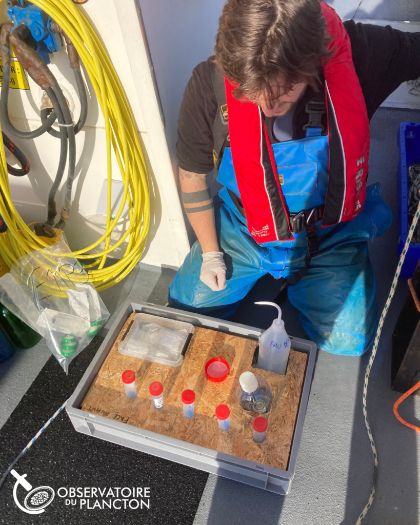 Outre la Vendée visitée le temps d’un week-end pour le Festival du Plancton, les membres de l’association se sont déplacés pour d’autres raisons, impliquant toujours du plancton à l’arrivée. À Sète par exemple, notre chargé d’études littoral s’y est déplacé afin de conseiller l’équipe de tournage du futur film « La baleine » pour la partie Plancton. Une semaine entière dans le sud afin d’apporter son expertise technique sur la collecte, l’observation et la mise en valeur des différents organismes collectés. Une opportunité pour le Plancton d’être de nouveau mis sous les lumières des projecteurs aux côtés de la baleine, dans cette œuvre de Sylvère Petit. Enfin dernière escale à Fécamp, en Normandie. C’est de nouveau notre scientifique, Antoine Charpentier, qui s’est aventuré cette fois-ci en bateau pour le projet de parc éolien : Fécamp, grand large. Durant deux jours, Antoine a pu observer et conseiller sur les différentes pratiques de prélèvements, vérifier les mesures de sécurité et de traçabilité des échantillons ou encore recommander des pratiques d’échantillonnages. En bref, ces voyages n’ont pas fait quitter l’Observatoire du pays comme en 2024 avec la Chine mais ils montrent que l’association aime prendre sa valise et diversifier ses actions en France !